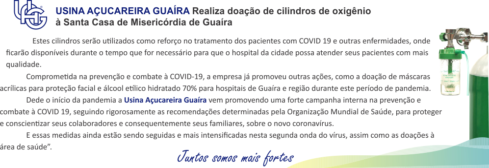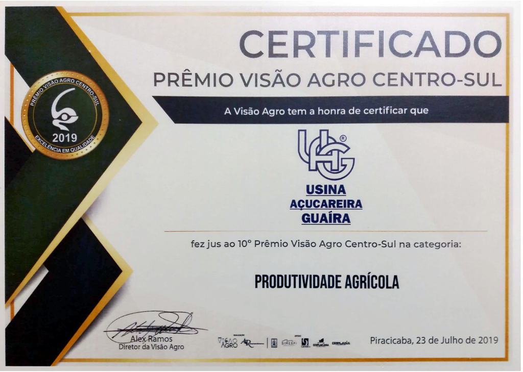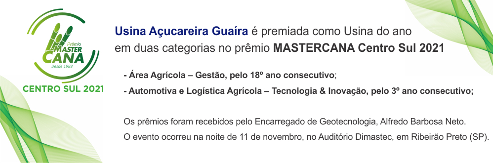 No dia 09 de dezembro, a Usina Açucareira Guaíra finalizou sua safra 2018/19, com uma moagem recorde de 3.016.314,53 toneladas de cana e com ótimos índices de produção. A produtividade média da safra ficou em 90,25 toneladas por ha e o teor de ATR ficou em 139,58 kg/tonelada. A usina processou em 2018 cerca de 103 milhões de litros de etanol e 4,8 milhões de saca de açúcar. Mesmo com um ano de seca mais intensa conseguimos obter bons resultados dos canaviais, cujo estágio médio de corte é de 4,2 anos. Isto foi possível com a utilização de tecnologias inovadoras aplicada na área agrícola e ao manejo eficiente realizado com práticas sustentáveis. A usina esta há mais de dez anos com a colheita mecanizada de cana crua.